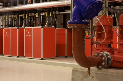 Die Anlage verfügt über eine Gesamtleistung von 900 kW im Wärmepumpenverbund. Die Aufteilung in ein Master-Slave-System ermöglicht eine optimale Leistungsanpassung und hat zudem den Vorteil einer maximalen Verfügbarkeit und arbeitsbereitschaft des Systems.